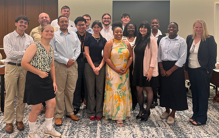 This summer, four George Mason students participated in the Virginia Academy of Science, Engineering and Medicine (VASEM-UPP) in Richmond, VA. Guided by Environmental Science and Policy Associate Professor K.L. Akerlof, participants in this bootcamp on science policy in Virginia, participants visited the General Assembly to explore STEM-H and shadow COVES Fellows in their legislative and executive offices. Throughout this unique learning experience, they explored topics like AI’s societal impact, health disparities, and Virginia’s energy future. From analyzing real-world case studies to engaging with policymakers and nonprofit leaders like Shelly Parsons of Capital Trees, our students are building impactful networks while gaining firsthand experience in how science shapes public policy at every level.